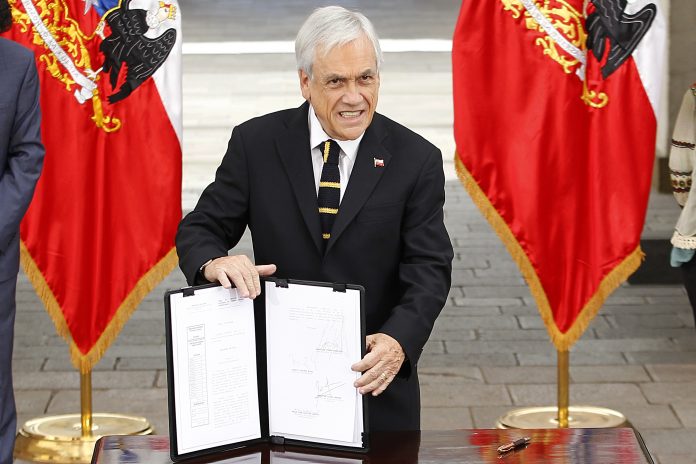 El Presidente Sebastián Piñera promulgó este jueves la ley del ingreso mínimo garantizado de $300.000 y afirmó que más de la mitad de los beneficiados son mujeres. También dijo que todos los favorecidos con ese subsidio podrán acceder a los beneficios de la ley de protección del empleo y las pymes promulgada el miércoles.