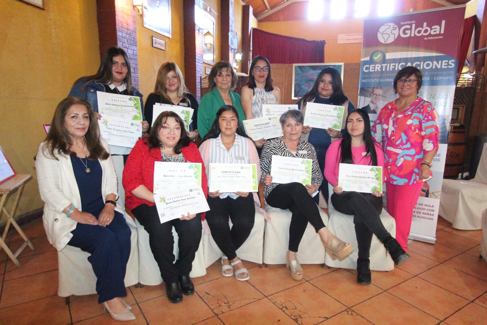 El sábado recién pasado, se vivió, en el restaurante “El Legado”, una especial ceremonia, en donde 14 alumnas del instituto Global de Educación Copiapó se certificaron como inspectoras especializadas en necesidades educativas especiales (NEE), aplicadas específicamente, a dar apoyo a niños con Trastorno del Espectro Autista (TEA).