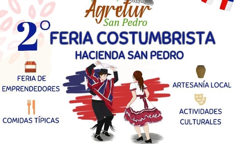 La Asociación Gremial de Turismo Rural de Hacienda San Pedro, Agretur y la Municipalidad de Copiapó, han organizado la Segunda Feria Costumbrista de San Pedro, actividad que se desarrollará durante los días 28, 29 y 30 de julio, en dicha localidad.