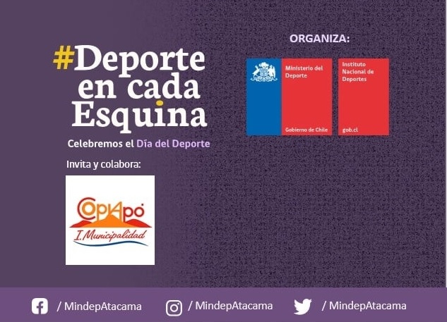 El Mindep, junto el IND y con el apoyo de la Municipalidad de Copiapó, están invitando a la comunidad a participar en el Día del Deporte.