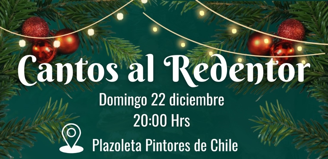 Para el domingo 22 de diciembre, a contar de las 20.00 horas, el evento denominado ‘Cantos al Redentor’, que cuenta con el patrocinio de la Guadalupita y el Comité de Hijos e Hijas de Pintores de Chile.