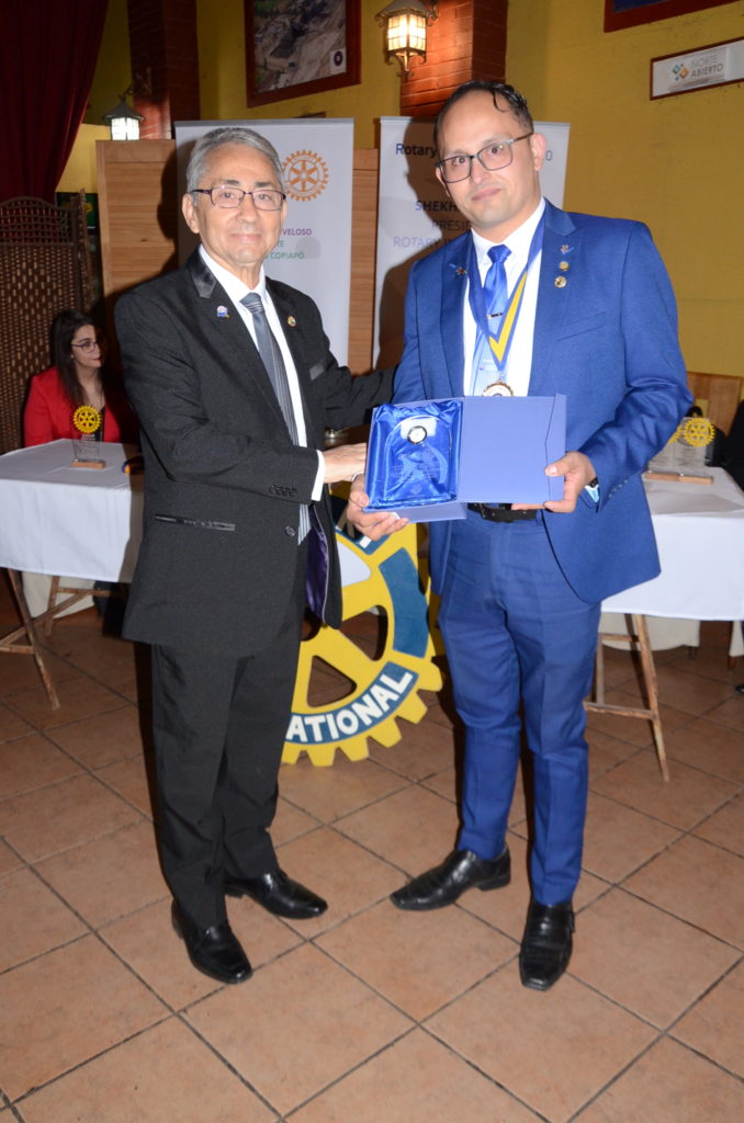 Su intervención concluyó con agradecimientos por el apoyo a su gestión y la entrega de reconocimientos a los integrantes de su Directorio y Presidentes de Comités, como además un tributo especial a Ricardo Vera Martínez, socio de su club y quien hasta el 30 de junio recién pasado ocupó el cargo de Gobernador del Distrito. Alejandro también premió a su macero del periodo, Ramón Palacios Pizarro, como rotario destacado.