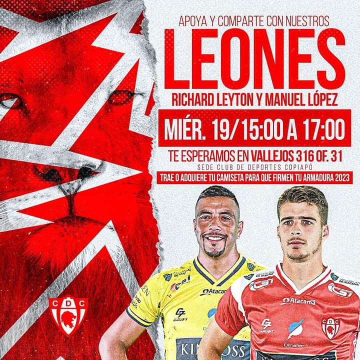 Atención aficionados…este miércoles 19 de abril desde las 15.00 y hasta las 17.00 horas los jugadores  Manuel López y Richard Leyton estarán firmando camisetas.