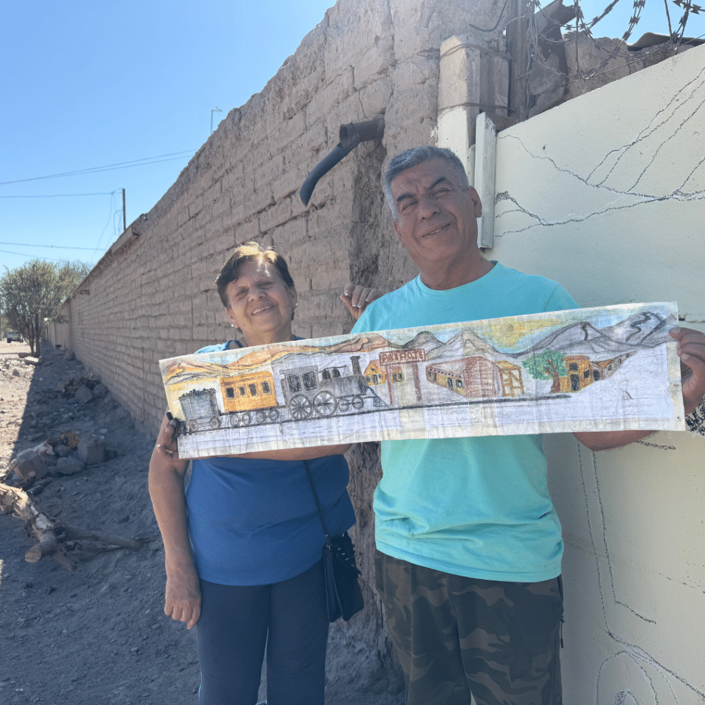 “Estos murales son una reseña histórica para nuestro sector, es nuestra avenida, nuestra calle principal. Entonces qué mejor que tener nuestra historia aquí”, expresó Ada Callejas, presidenta de la Junta de Vecinas y Vecinos Estación Emporio, quienes desde septiembre de este año se han reunido de forma periódica en compañía del muralista Richard Segovia, para dar vida a un cuadro que destaca la historia de esta comunidad y quedará plasmado en uno de los grandes muros de Paipote.