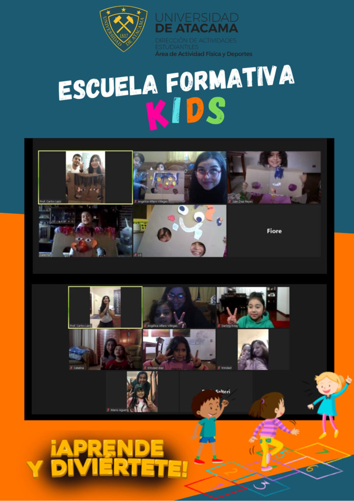 Desde inicios del mes de julio la Escuela Formativa de la Universidad de Atacama se ha mantenido activa por medio de los talleres de Gimnasia, taller de Juegos y Actividades Recreativas y el taller de Psicomotricidad y Manualidad a través de la plataforma ZOOM, según informaron desde el Área de Actividad Física y Deporte (AAFD) de la UDA.
