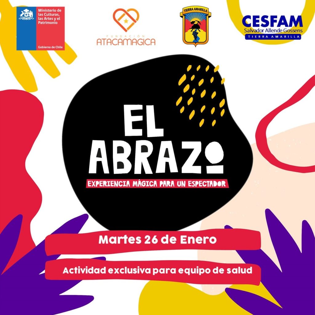 Con el objetivo de entregar unos momentos de alegría y asombro para desconectar por unos instantes de la rutina, Fundación Atacamagica llevó “El Abrazo” a los funcionarios del centro de salud familiar (CESFAM) Salvador Allende Grossens de Tierra Amarilla. Se trata de una función experimental de magia que se realiza vía whatsapp con un solo espectador, donde mago y participantes son protagonistas y creadores de sorprendentes efectos de ilusionismo, mientras hacen un viaje por sus recuerdos y emociones.