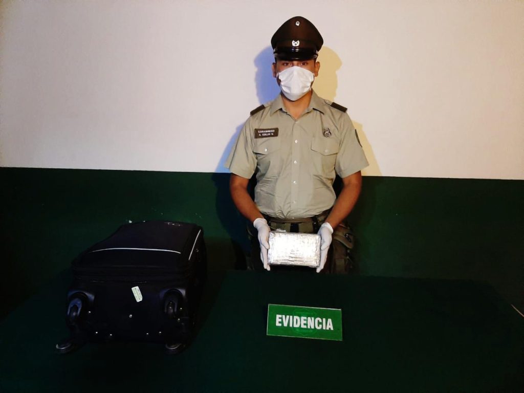 Conforme a lo anterior, el personal de Carabineros dio cuenta a la Fiscalía de Copiapó, quien dispuso la incautación y revisión de la maleta, en cuyo interior se encontraba un paquete envuelto en cinta de color gris con droga, que al ser sometida a análisis arrojó ser clorhidrato de cocaína.