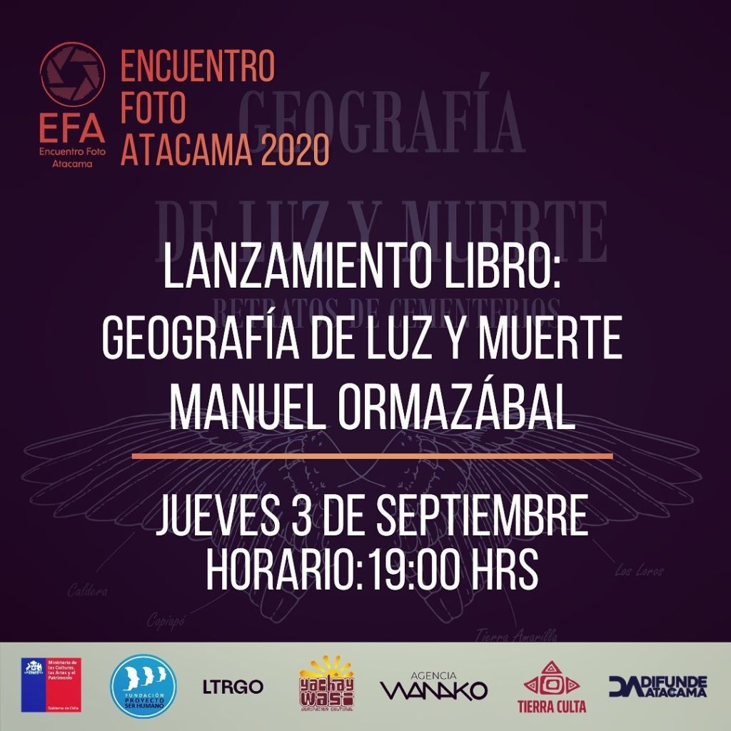 A través de una transmisión abierta por Google Meet que podrá verte en el link https://meet.google.com/sra-ptri-rbc se realizará el lanzamiento del libro Geografía De Luz y Muerte del destacado fotógrafo Manuel Ormazábal Ortiz este jueves, 3 de septiembre, a las 19:00 horas.