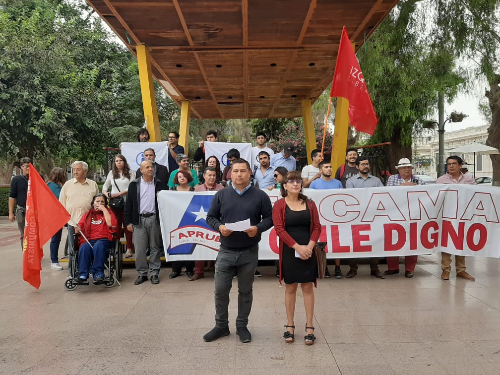Militantes del Partido Comunista, Humanista, Izquieda Libertaria, Federación Regionalista Verde, el PRO, la CUT, movimientos sociales e independientes se reunieron este lunes en la Plaza de Armas de Copiapó para dar a conocer la formación del Comando “Apruebo, Atacama, Chile Digno”.
