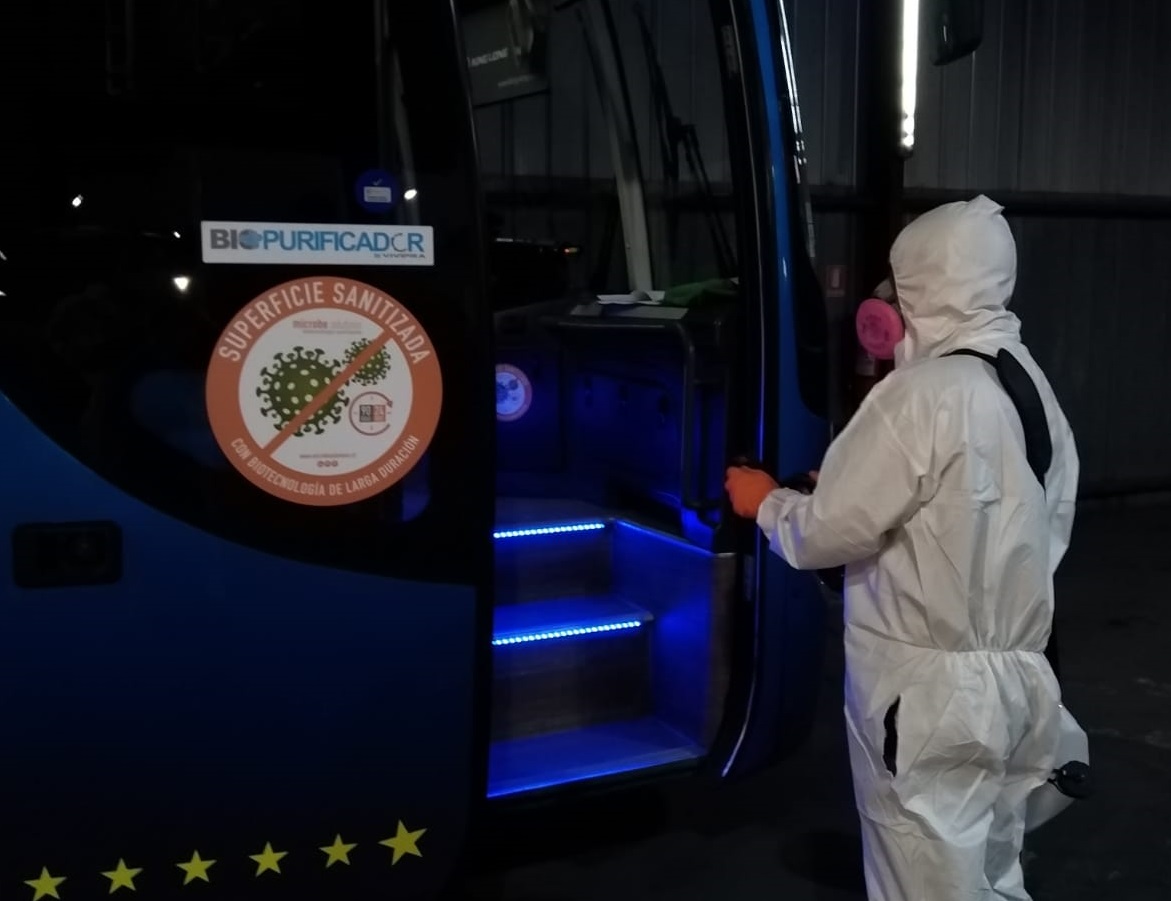 Entre las medidas que destaca, que van más allá de los protocolos, está el uso de pediluvio, registro online de pasajeros, disposición de alcohol gel en los buses, jabón y toallas desechables en los baños, cortinas antibacterianas separadoras entre asientos, y medidas más potentes como la instalación de sistemas de purificación de aire al interior de los buses, o en el caso específico de la flota de Cikbus Elité, la sanitación permanente de superficies con la aplicación de X Microbe, producto de la empresa Microbe Solutions que garantiza superficies libres de agentes patógenos por un tiempo prolongado (90 días), sin efectos negativos en la salud ni en el medio ambiente, tecnología que también se está usando en otras empresas de transporte y servicios, tales como Metro y Centropuerto, entre otras, otorgando una solución para lugares de alto movimiento.