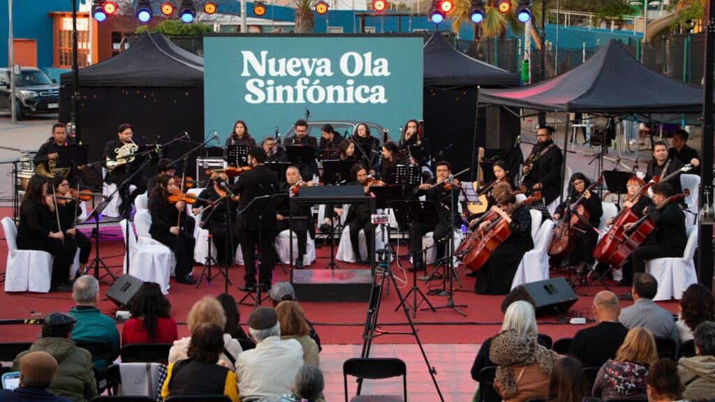 La Plaza Carlos Condell se llenó de música, emoción y un público entusiasta que disfrutó de una inolvidable presentación de la Orquesta Sinfónica de Copiapó, con su concierto «Música de la Nueva Ola», con la participación de los cantantes regionales Wildy Rojo y Francisca Suárez.