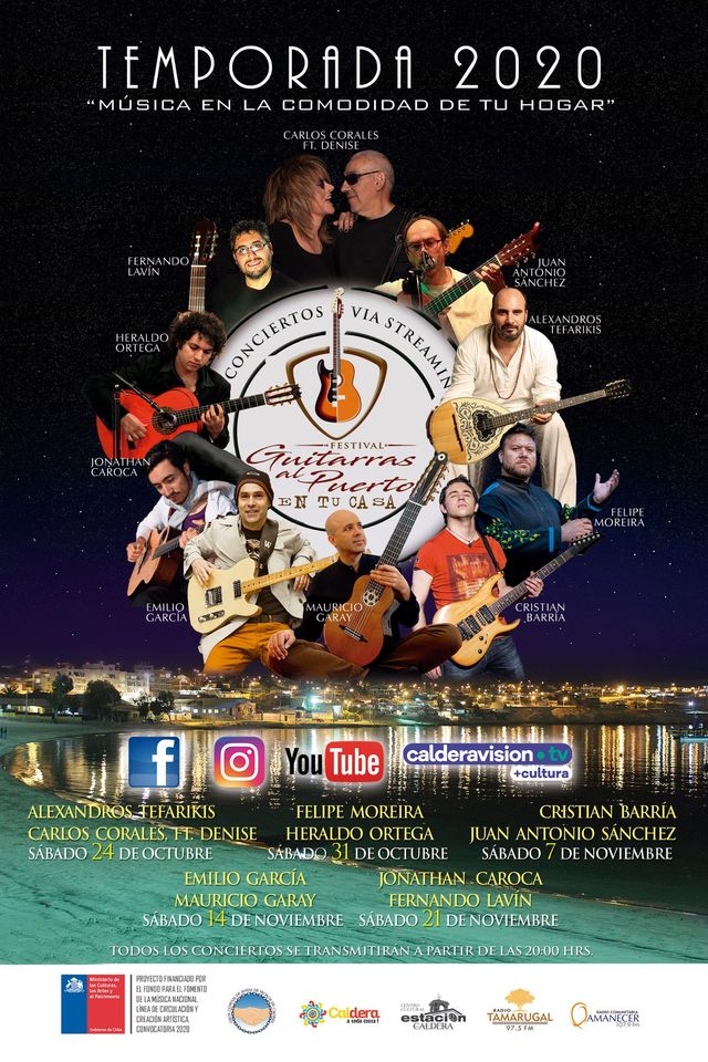Mañana sábado continúa el desarrollo del evento cultural “Guitarras al Puerto”, que lleva por slogan ‘Música en la Comodidad de Tu Hogar’, y que este año 2020 es vía streaming a través de las diferentes plataformas en redes sociales (Facebook, Instagram, Youtube) y a también por Caldera Visión en el cable.