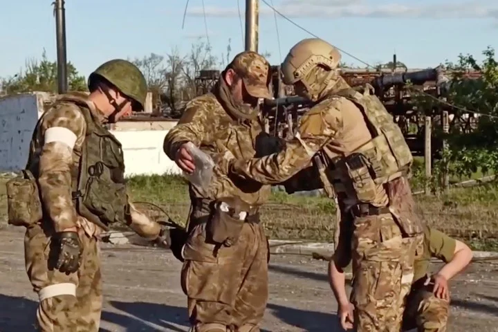 En el vídeo se puede ver también el proceso del traslado de los heridos graves que abandonan la planta en camillas sujetadas por sus compañeros hasta llegar a la zona controlada por tropas rusas, donde les prestan los primeros auxilios.