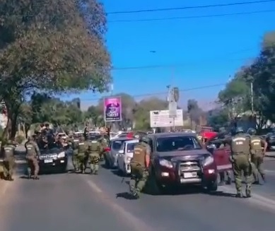 Cuando la caravana avanzaba por la citada avenida y antes de llegar a calle Chacabuco, fue intervenida por un fuerte contingente policial.