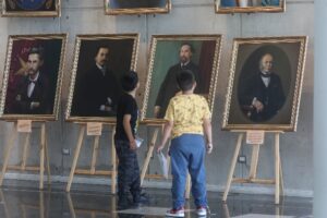 Asimismo, conocieron parte del patrimonio a través del gran mural de Christian Rivadeneira, quien personalmente narró historias y antecedentes al público que le inspiraron a crear su obra. En paralelo a ello, estaba la exposición “Trozos de la Historia” del artista Julio Alarcón, quien también estuvo presente en el recorrido y describió cómo él desarrollo sus más de 20 cuadros pictóricos de personajes icónicos del patrimonio local, como son Monseñor Fernando Ariztía, el ex seleccionado nacional de Fútbol Eladio Rojas y el reconocido “El Máquina”.