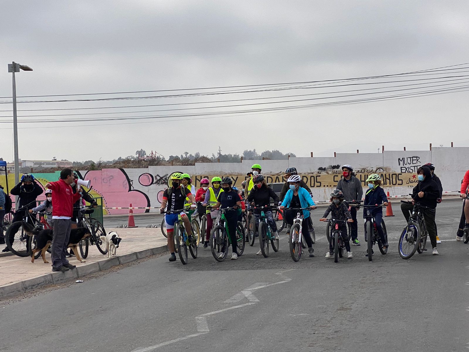 Arriba de sus bicicletas, con cascos y botellas de agua, docenas de niños, niñas y adolescentes acompañados de sus familias, llegaron hasta el Parque Kaukari de la ciudad de Copiapó, para ser parte de la primera “Cicletada Familiar Inclusiva” del Elige Vivir Sano.