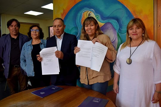 La directora del Servicio Nacional del Patrimonio Cultural en Atacama, Catisis Lobos Alcota, y el alcalde de Vallenar, Armando Flores Jiménez, se reunieron en dependencias del centro cultural Padre Luis Gil para firmar un convenio de colaboración que permitirá mejorar el equipamiento de la biblioteca pública de la comuna.