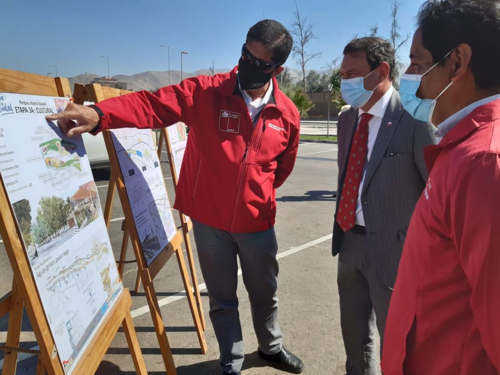 En terreno, donde pronto comenzará la ejecución de una de las obras urbanas más emblemáticas para Atacama, como es una nueva etapa del Parque Kaukari, el Intendente (s) Ignacio Urcullú junto al Seremi Minvu, Pedro Ríos y el Director Serviu, Rodrigo Maturana, informaron detalles del ambicioso plan de licitaciones año 2021 que generará obras habitacionales y urbanas por más de $65 mil millones de pesos, lo que además permitirá la generación de más de 6 mil nuevos empleos.