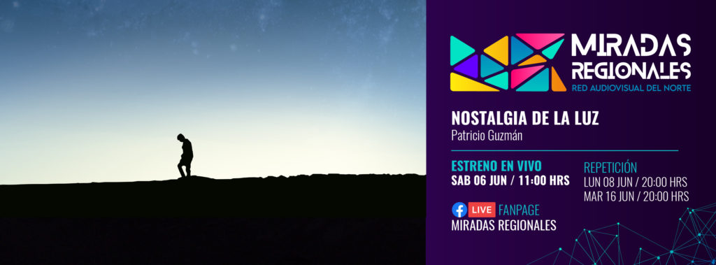 Para el sábado 6 de junio desde las 11.00 a 13.00 horas será la presentación de ‘Nostalgia de la Luz’ vía streaming por Miradas Regionales, evento Organizado por Miradas Regionales.