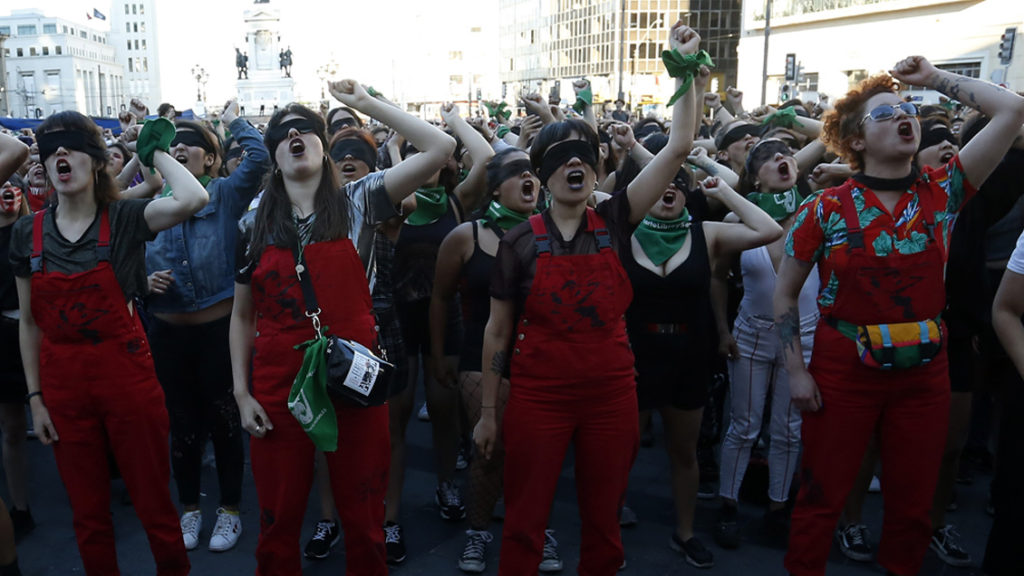 Esta manifestación «es imparable», enfatizó, «tiene un efecto rotundo porque es muy potente el efecto de esta performance que crearon estas cuatro mujeres chilenas, a las que va a haber que hacerles un monumento; porque te interpela, a los hombres les provoca algo, incluyendo un poco de temor, porque ven por primera vez a las mujeres tan empoderadas, tan juntas, dándose las manos y sintiéndose que juntas son capaces de asumir que no habrá más impunidad».