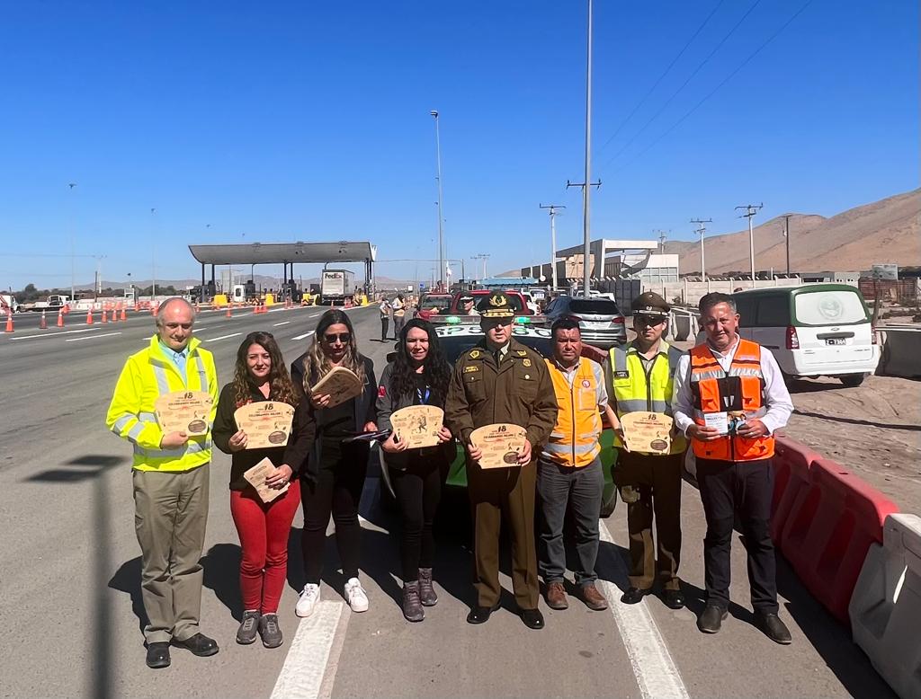 El General Jorge Muñoz Soto, Jefe de Zona de Carabineros Atacama, señaló “el trabajo que hoy desplegamos en coordinación con los demás servicios en una colaboración muy estrecha con la concesionaria, con Concesiones MOP, con SENDA que nos acompaña también y que han sido parte de las fiscalizaciones preventivas. Y cómo podemos observar ya se ha desplegado parte importante de nuestro personal para poder hacer las fiscalizaciones de lo que significará la revisión de documentos, pruebas de alcotest, pruebas de drogas a los cuales serán sometidos los conductores. Así que el llamado es a poder hacer de esta celebración algo familiar, en tranquilidad y respetando las condiciones de tránsito, para así evitar graves accidentes”.