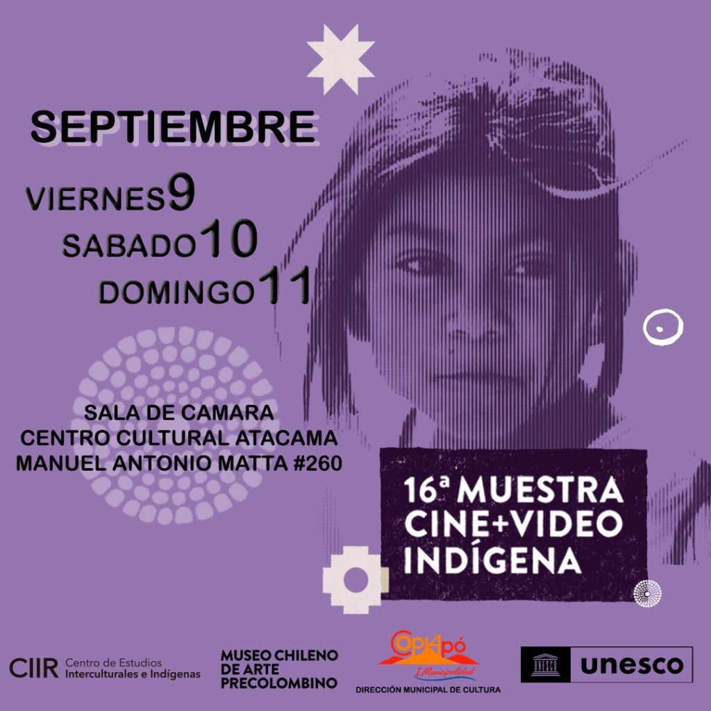 La municipalidad de Copiapó, a través de su dirección de Cultura, junto al Museo de Arte Precolombino y el Centro de Estudios Interculturales e Indígenas (CIIR), invitan a la 16° versión de la Muestra Cine+Video Indígena.