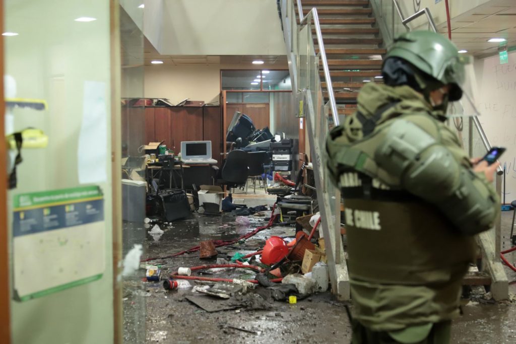 3.- El terrorismo existente no permite trabajar ni vivir en paz, atenta contra derechos humanos de ciudadanos indefensos y destruye progresivamente la democracia. Explosivos en infraestructura pública, quema de camiones -poniendo en grave riesgo la cadena de abastecimiento del país-, destrucción de escuelas y sedes sociales ocurren en absoluta impunidad, con un Estado ausente que no da garantías a sus ciudadanos.