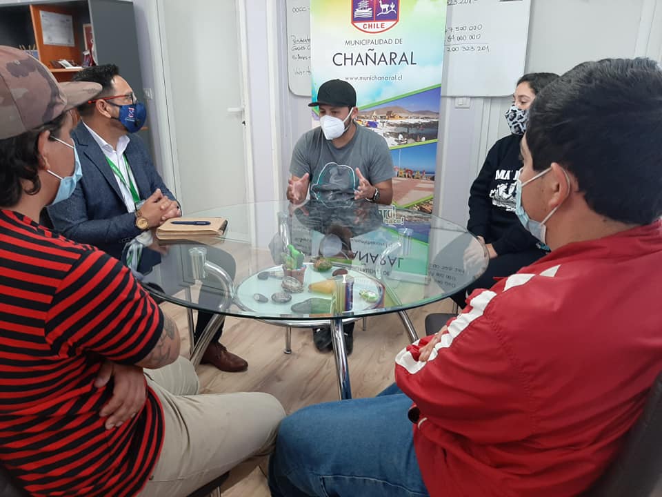 En una reunión desarrollada en la oficina del Alcalde Raúl Salas Aguilera, en donde recibió a la agrupación «Destack» jóvenes deportistas quienes a diario realizan la disciplina extrema en el skatepark del sector Aeropuerto de Chañaral.