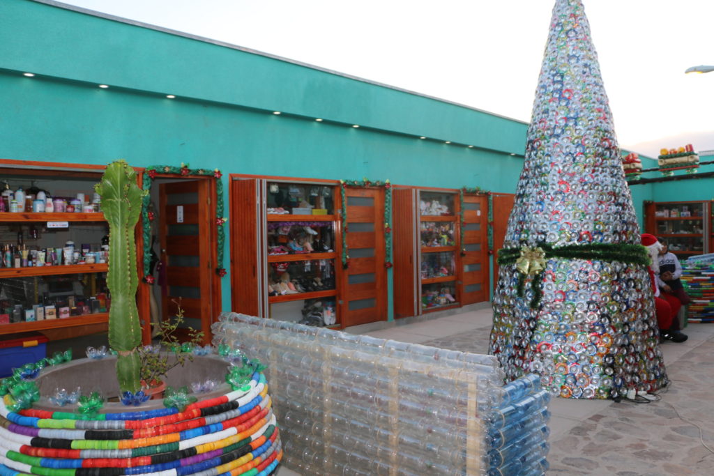 Jessenia Villavicencio, Presidenta del Sindicato Entre Rieles, señaló “Con este son tres años que llevamos armando nuestro árbol sustentable, pero esta vez quisimos agrandar el proyecto porque no solamente hicimos el árbol sino varias sorpresas más como sillones, el pesebre, el tren navideño, porta velas, entre otras, pero este proyecto nos costó seis meses de trabajo porque tuvimos que juntar el material y reciclarlo para poder armar este proyecto. Con nuestras compañeras trabajamos muy duro pero llegamos a la meta y estamos felices de mostrar este trabajo a la comunidad”.