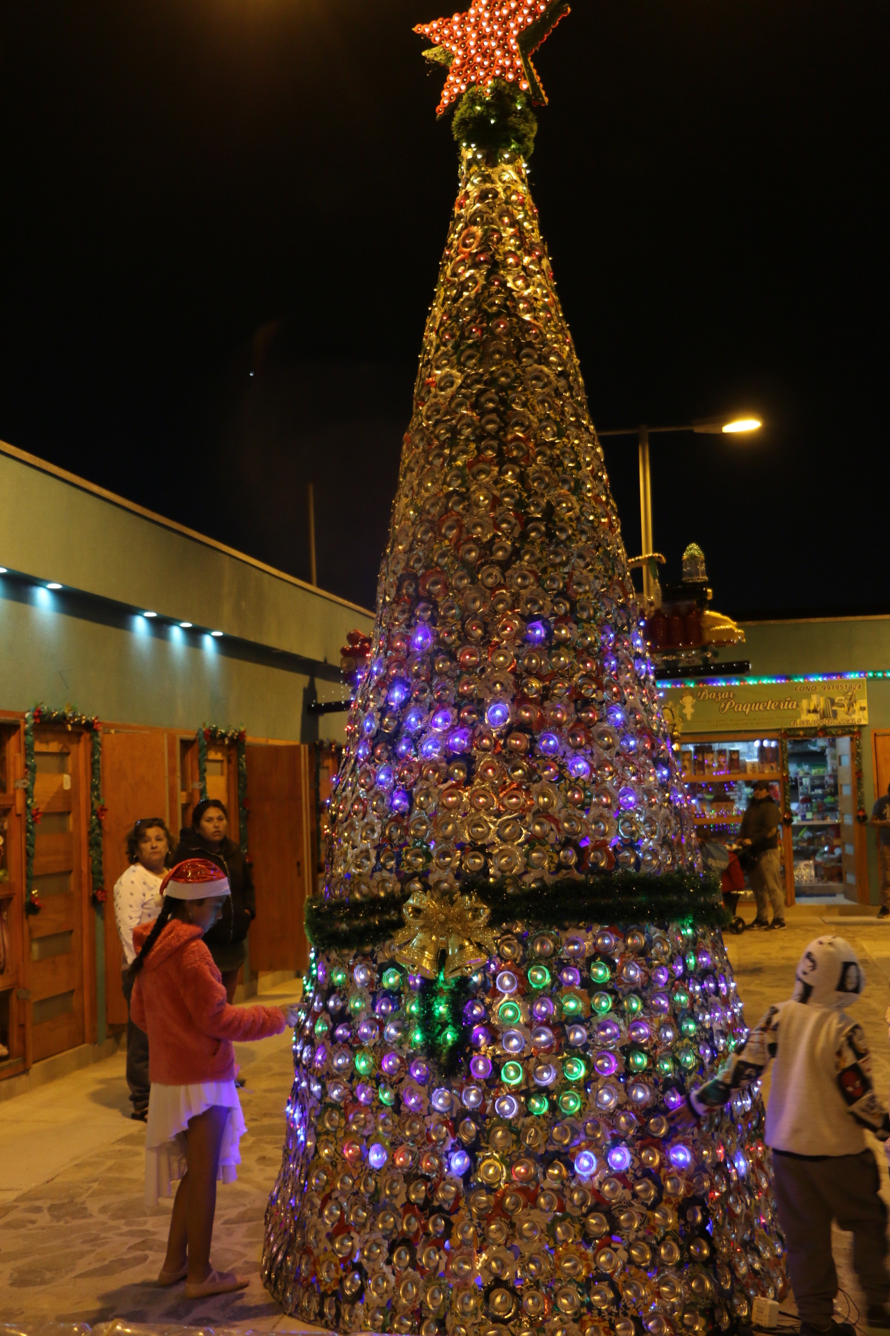Novedoso árbol de Navidad sustentable inaugurado por mujeres de Feria Entre Rieles