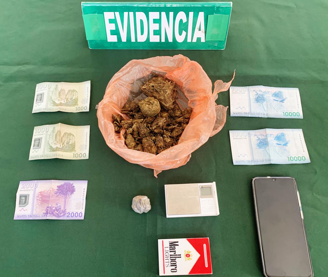 En el allanamiento se encontró una importante cantidad de marihuana a granel avaluada en más de 1.500.000 y lista para la venta, además de dinero en efectivo, La investigación determinó que los imputados K.A.C.C de 24 años, y S.M.B. de 46 años, vendían marihuana vía internet, desde la plataforma WhatsApp.