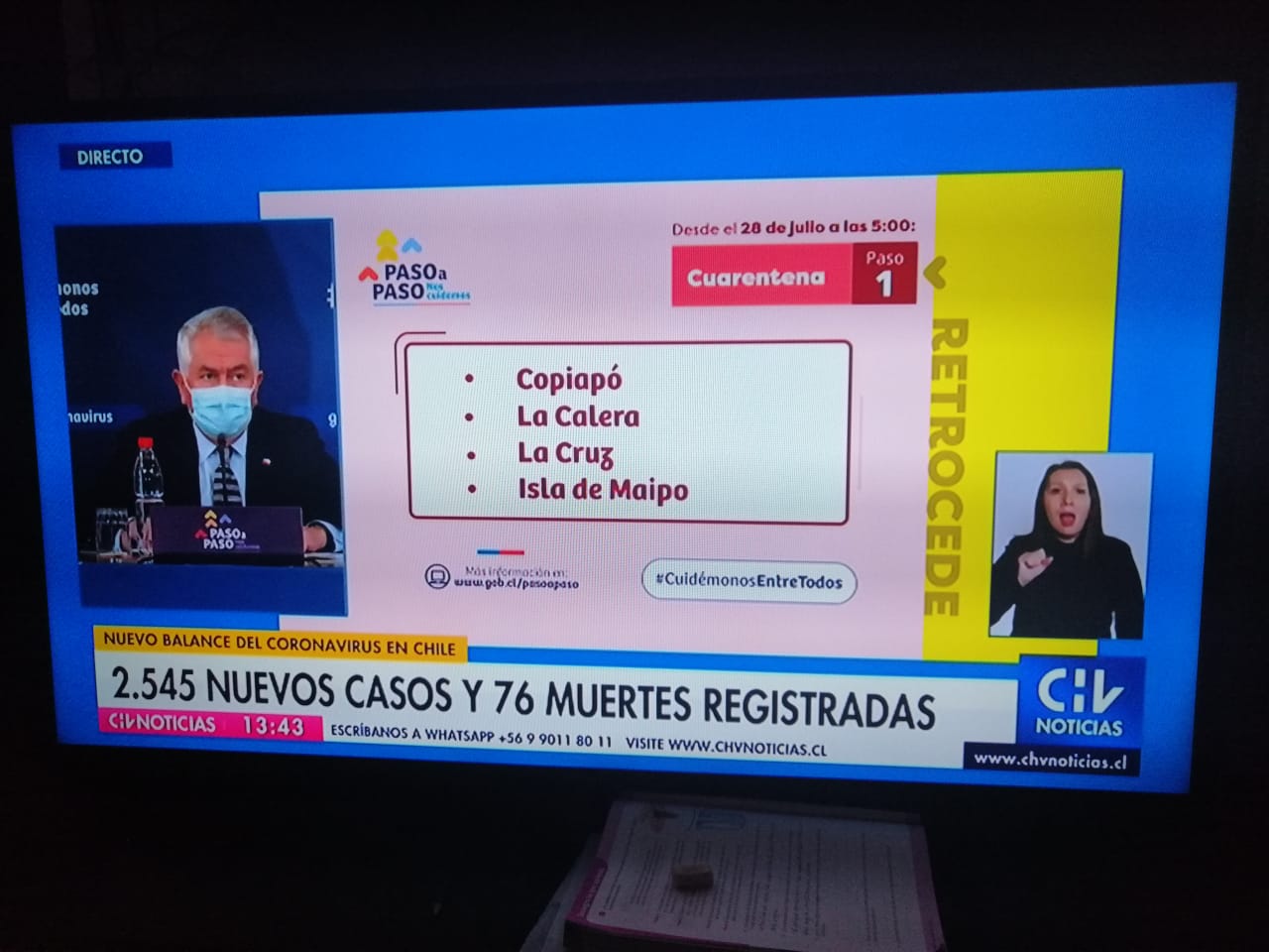 El Ministro de Salud, Enrique Paris, en el marco de un nuevo balance de la pandemia de Coronavirus, informó que Copiapó, La Calera, La Cruz y la Isla de Maipo, en la Región Metropolitana, comenzarán su cuarentena oficial a contar de las 22:00 horas del lunes 27 de julio.