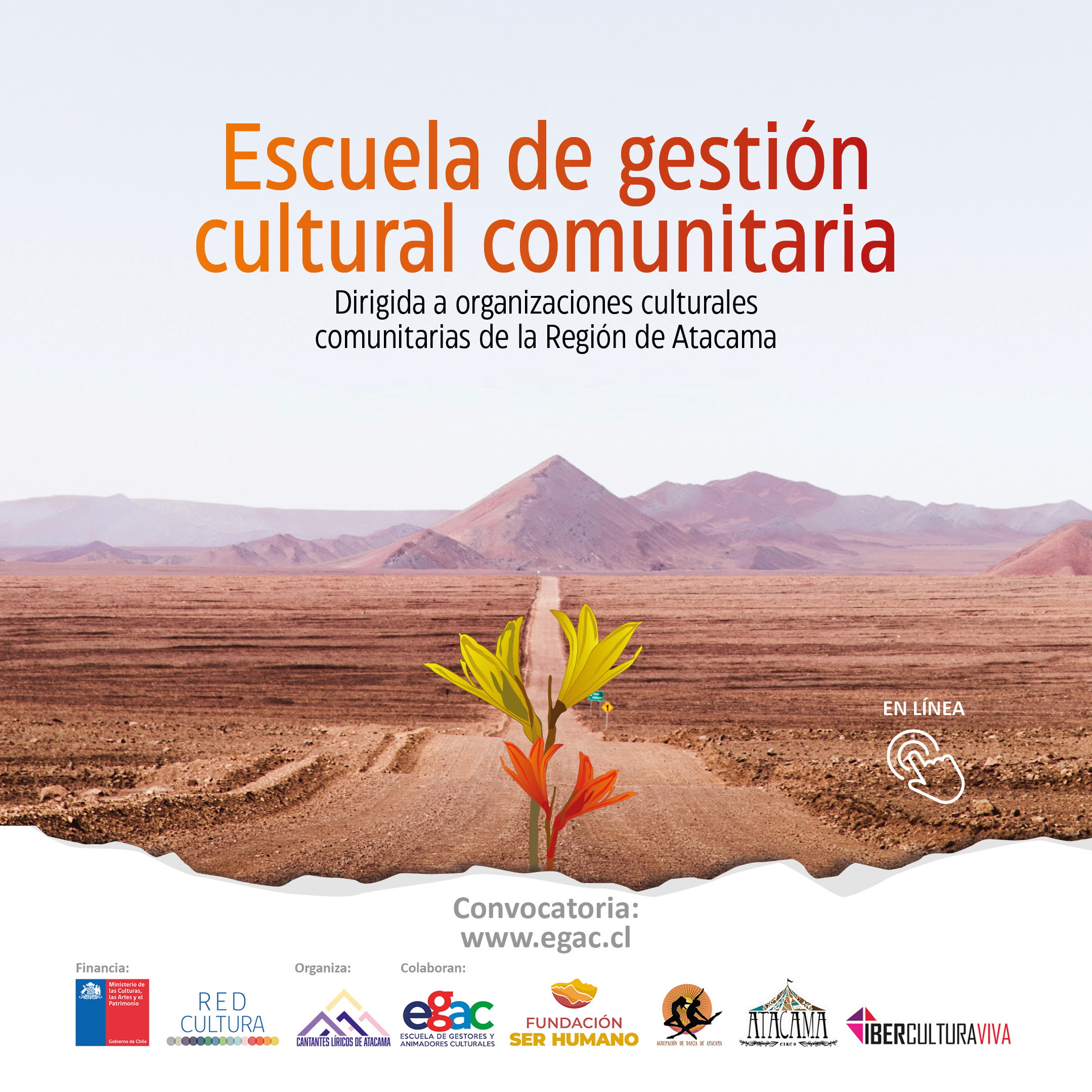 Cabe destacar que el proceso formativo está a cargo de profesionales de la Escuela de Gestores y Animadores Culturales (EGAC) y aborda temas de gestión cultural comunitaria, políticas culturales, diseño de proyectos, gestión de recursos, registro y sistematización de experiencias. También, al final del ciclo EGAC en conjunto con la Mesa de Organizaciones Culturales Comunitarias de la Región de Atacama y el Ministerio de las Culturas, las Artes y el Patrimonio certificarán a todas las personas que hayan participado en al menos el 80% de las actividades y cumplido satisfactoriamente las exigencias establecidas.