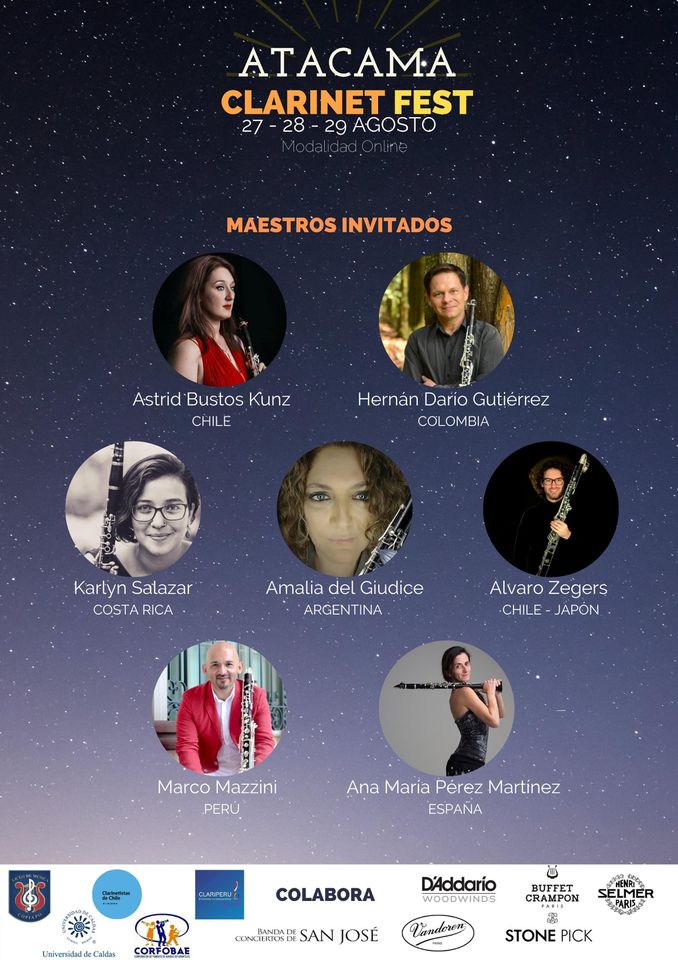 En cuanto a los docentes, los que poseen una dilatada trayectoria son: Astrid Bustos Kunz, de Chile; Hernán Darío Gutiérrez, de Colombia; Amalia del Giudice, de Argentina; Alvaro Zegers, Chile-Japón; Karlyn Salazar, de Costa Rica; Ana María Pérez Martínez, España; Marco Mazzini, de Perú y Martín D’Auria, de Argentina. “La importancia es que el Atacama Clarinet Fest es un punto de encuentro para niños, niñas y jóvenes estudiantes del clarinete, y en que