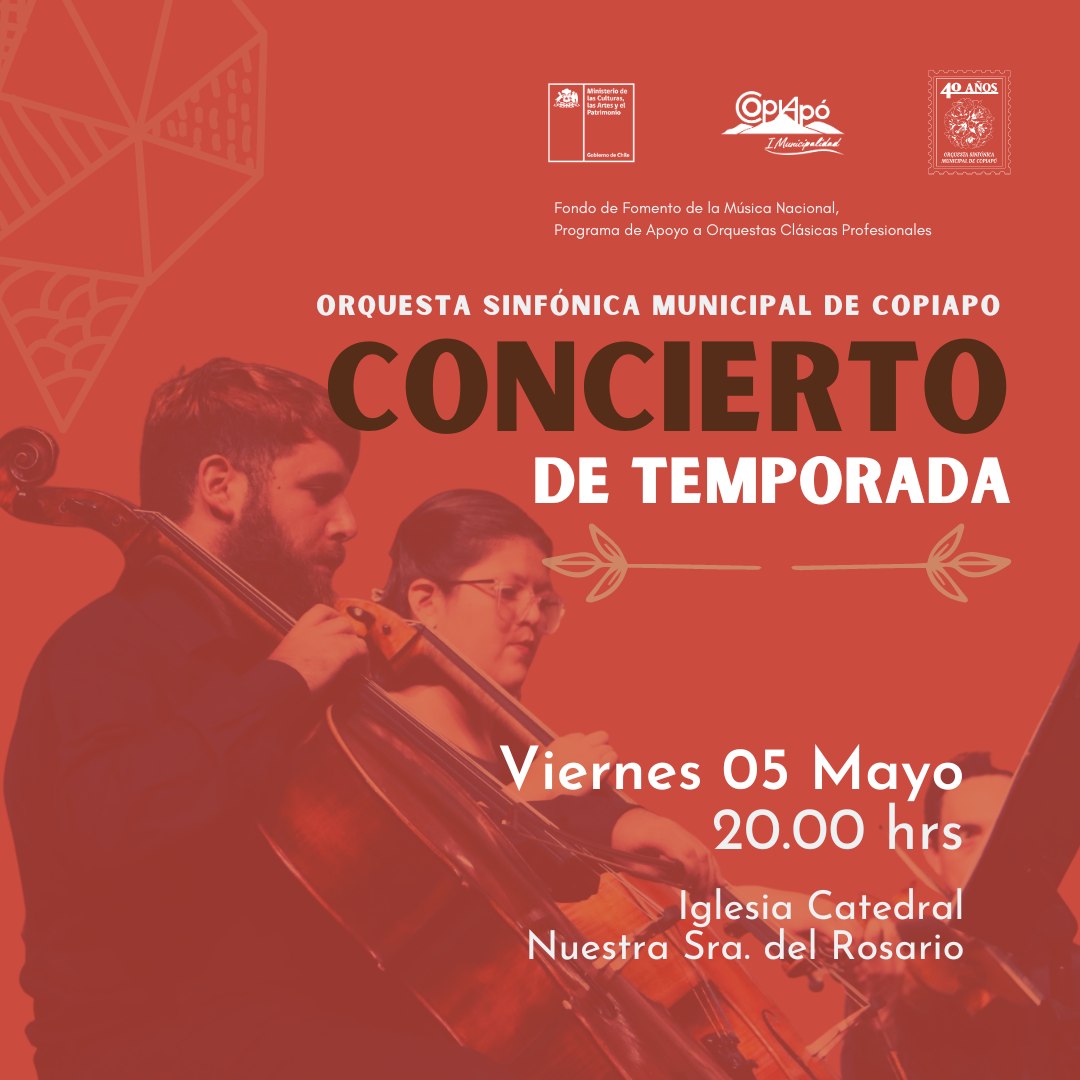 La Orquesta Sinfónica de Copiapó invita a la comunidad a disfrutar de un nuevo concierto, el que tendrá lugar el viernes 5 de mayo, desde las 20.00 horas en la Iglesia Catedral.