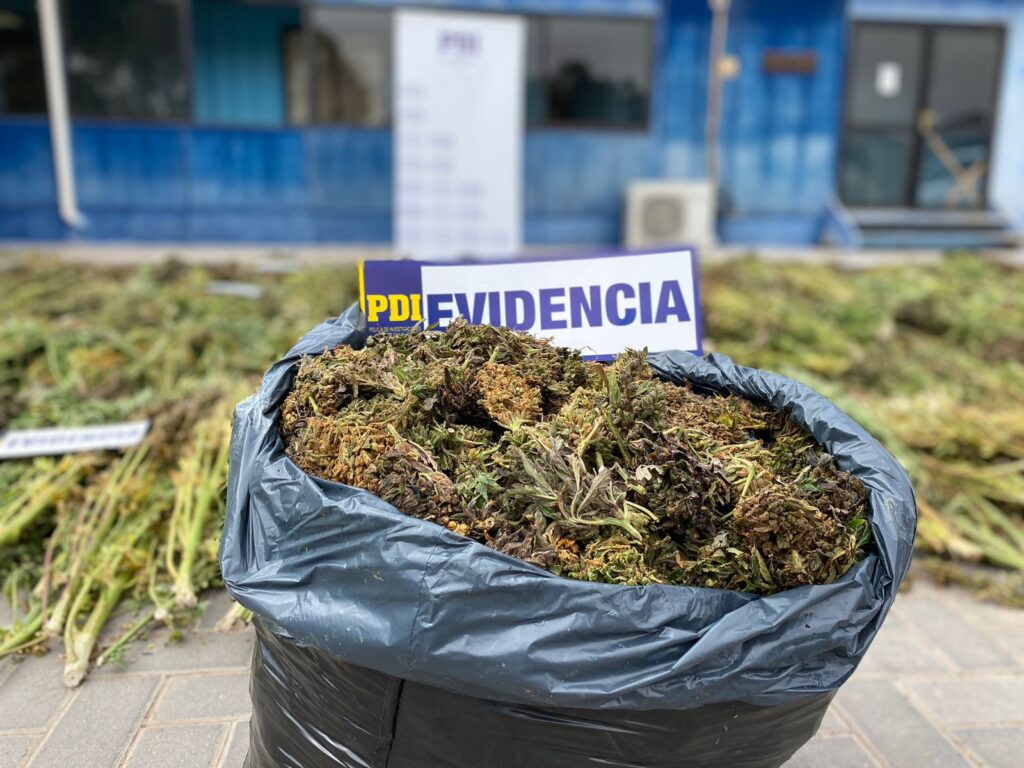 “En el desarrollo del procedimiento, investigadores policiales realizaron el hallazgo de una plantación consistente en 183 plantas del género cannabis, con dimensiones entre los 50 a 160 centímetros. Además, se identificó un campamento confeccionado de material ligero donde se logró detectar cannabis procesada en una cantidad de 38 kilos y 140 gramos. La incautación total de la droga tiene un equivalente superior a los 350 millones de pesos en caso de haberse comercializado en el mercado ilegal”, señaló el subprefecto Víctor Ubillo, Jefe de la Brianco Copiapó.