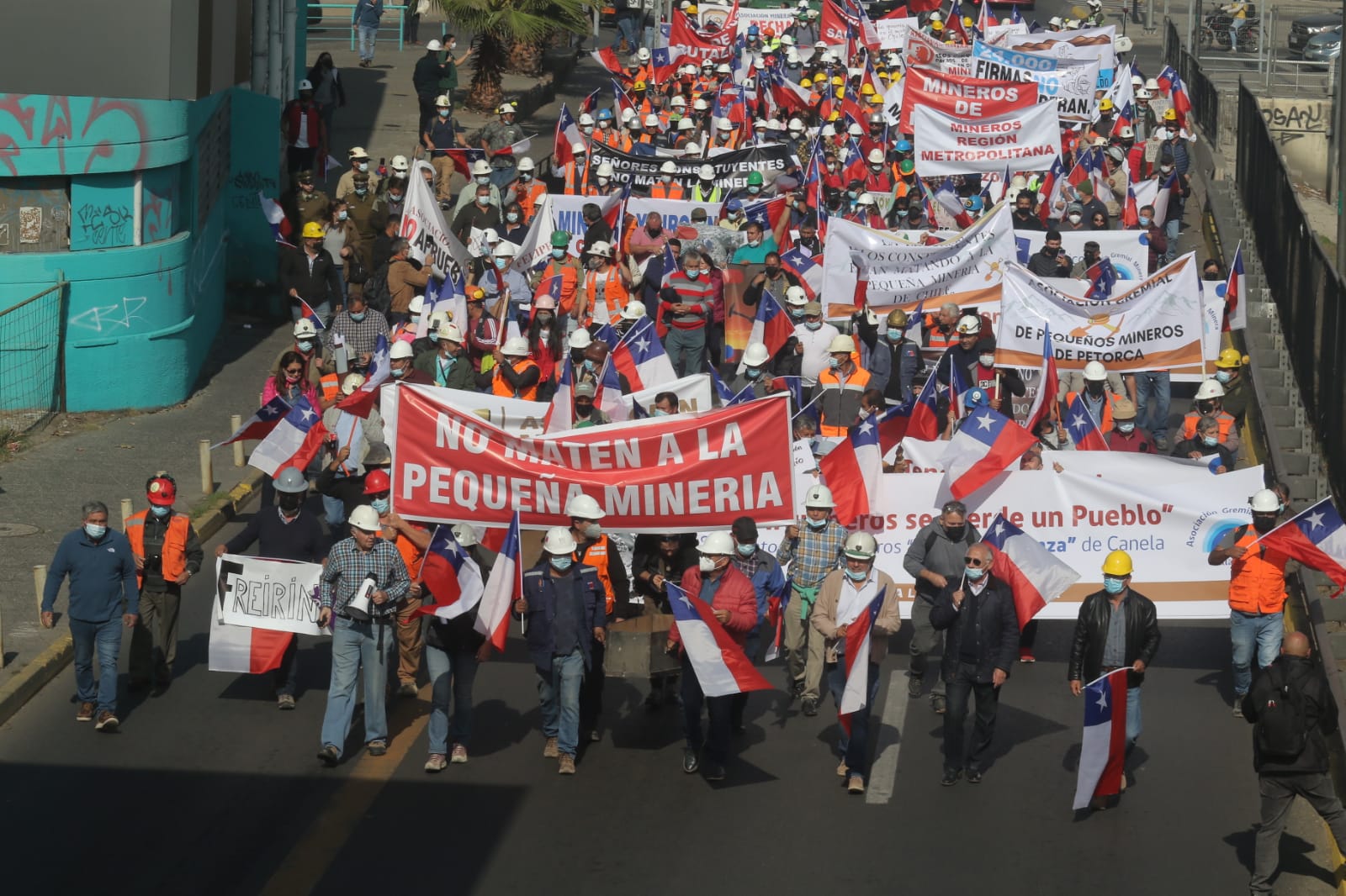 Productores y trabajadores mineros provenientes de Atacama y Coquimbo se manifestaron frente de la sede de la Convención Constitucional en defensa de la minería chilena, en una actividad donde fueron visibles carteles de Freirina, Huasco, Vallenar, Copiapó, Tierra Amarilla; Illapel, Combarbalá, Domeyko o Punitaqui junto a organizaciones desde El Loa hasta Maule, un día antes que el pleno del organismo vote una serie de artículos que ponen en peligro el desarrollo del sector.                                                                                                                                        En la ocasión, los mineros entregaron una carta a la presidenta de la Convención Constitucional, María Elisa Quinteros, y luego en un acto desarrollado en las inmediaciones de la sede constitucional leyeron una declaración pública, en que señalaron que “lo aprobado por la Comisión de Medio Ambiente precariza nuestra actividad productiva que da empleo a miles de personas y es el sustento económico de muchas ciudades en el norte del país”.