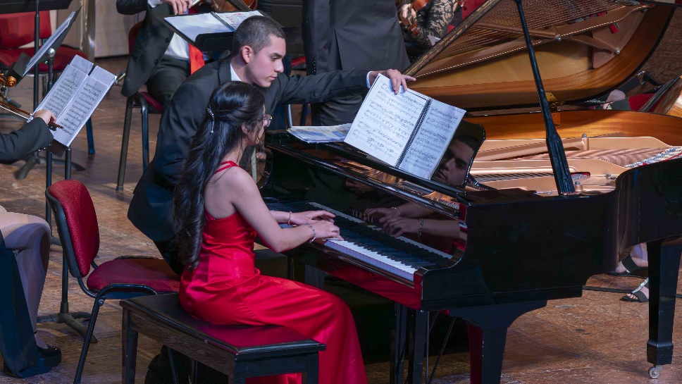 Una experiencia muy diferente a la de interpretar el instrumento en solitario. “El piano generalmente es un instrumento muy solo, en cambio, aquí estás en una orquesta. Tú sientes esa diferencia”, indica, agregando respecto a ser solista en el concierto que “el profesor de piano que me asignó FOJI me ha dado todas las facilidades para aprender nuestro concierto. Es un aprendizaje muy completo y así mismo el director Fabián Valenzuela nos hace sentirnos parte de la orquesta en el sentido de que podemos crear música como uno solo y claro, el piano se destaca porque es concierto para piano, pero asimismo nos unimos entre todos para poder lograr algo bonito”.