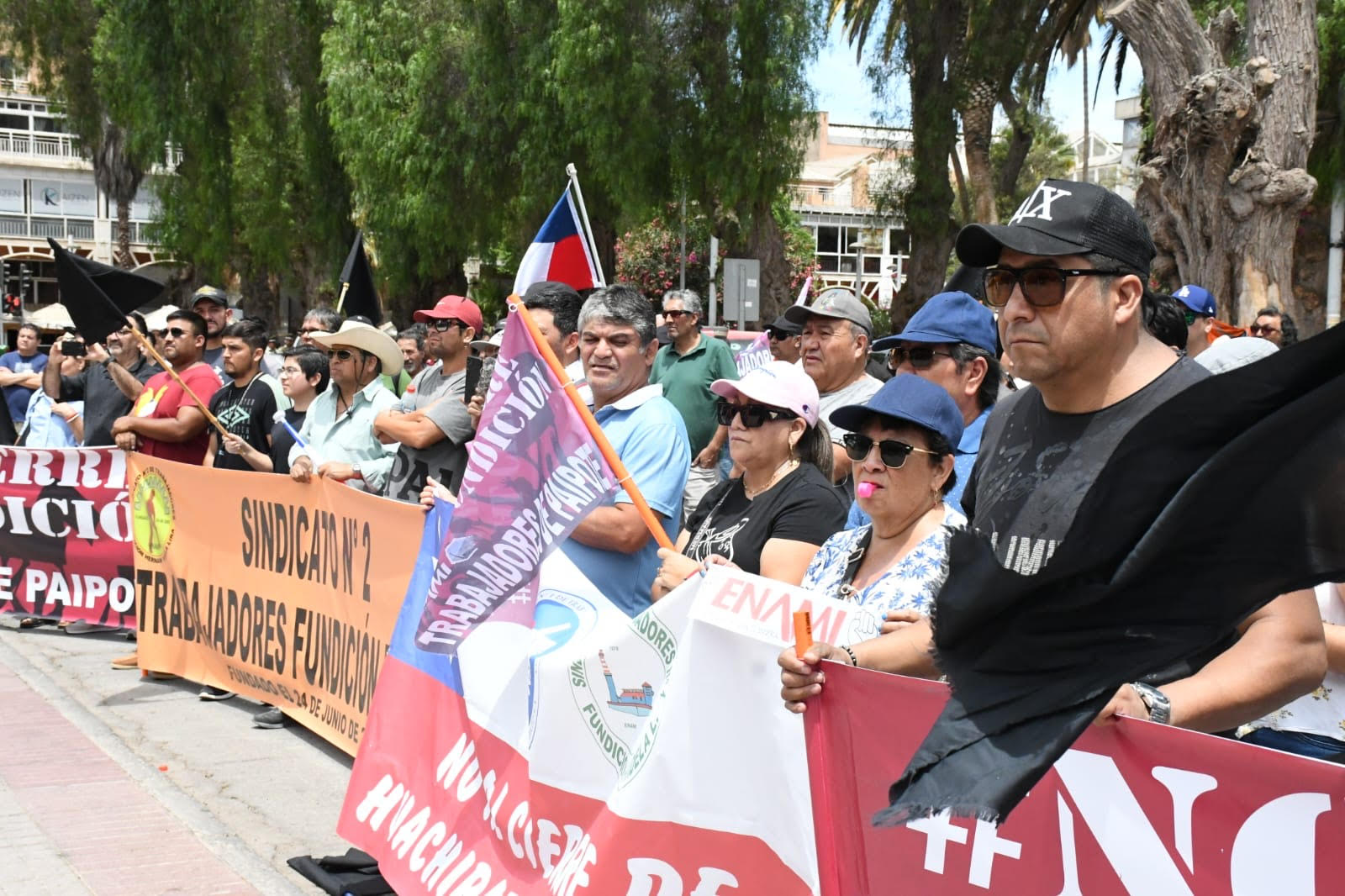 En tanto, el presidente del sindicato N1 de trabajadores de la Fundición Paipote, Eduardo de la Barrera, agradeció la asistencia del presidente del sindicato N1 de trabajadores de la Siderúrgica de Huachipato, destacó al Gobierno Regional por el apoyo entregado y disparó contra la Delegación Presidencial y la secretaria regional de Minería, argumentando un “cero apoyo”.