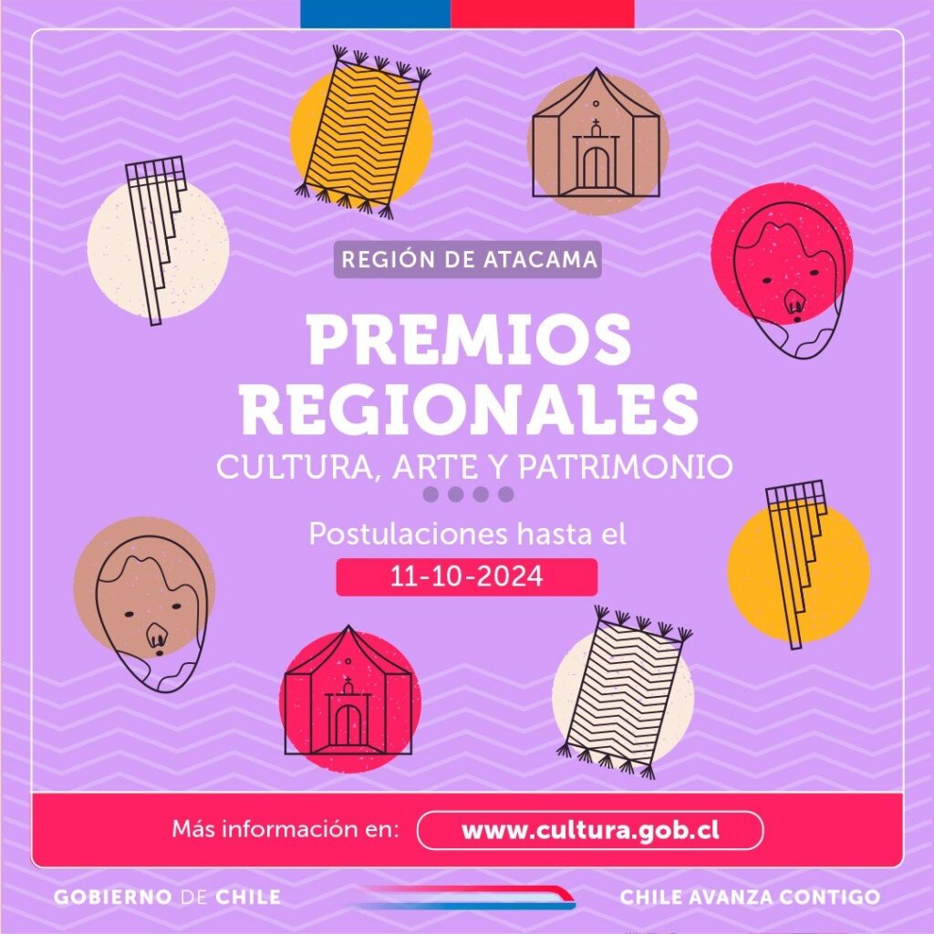 “Estamos muy contentos de anunciar la apertura de los premios regionales, que este año distinguen a artistas emergentes y de trayectoria en cada una de las comunas de Atacama, destacando a quienes son reconocidos por la labor y el aporte artístico cultural que realizan permanentemente en los territorios y sus comunidades. No se queden fuera, esta es una oportunidad para visibilizar y celebrar a quienes hacen de nuestra región un lugar lleno de rte, cultura y patrimonio”, señaló Carolina Armenakis Daher, Seremi de las Culturas, las Artes y el Patrimonio.