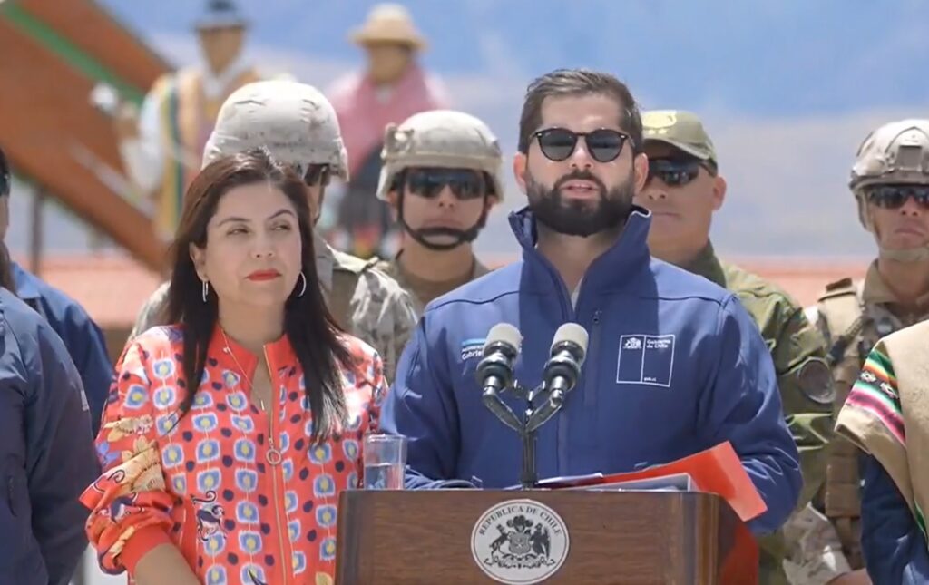 El presidente recordó que desde hace tres semanas las Fuerzas Armadas están desplegadas en la zona norte de Chile en el marco de la Ley de Infraestructura Crítica, que contempla la presencia militar por 90 días en un operativo que suma miles de controles y decenas de detenciones, y dijo que esta medida «permite que quienes viven en estas zonas se sientan más seguros y resguardados».