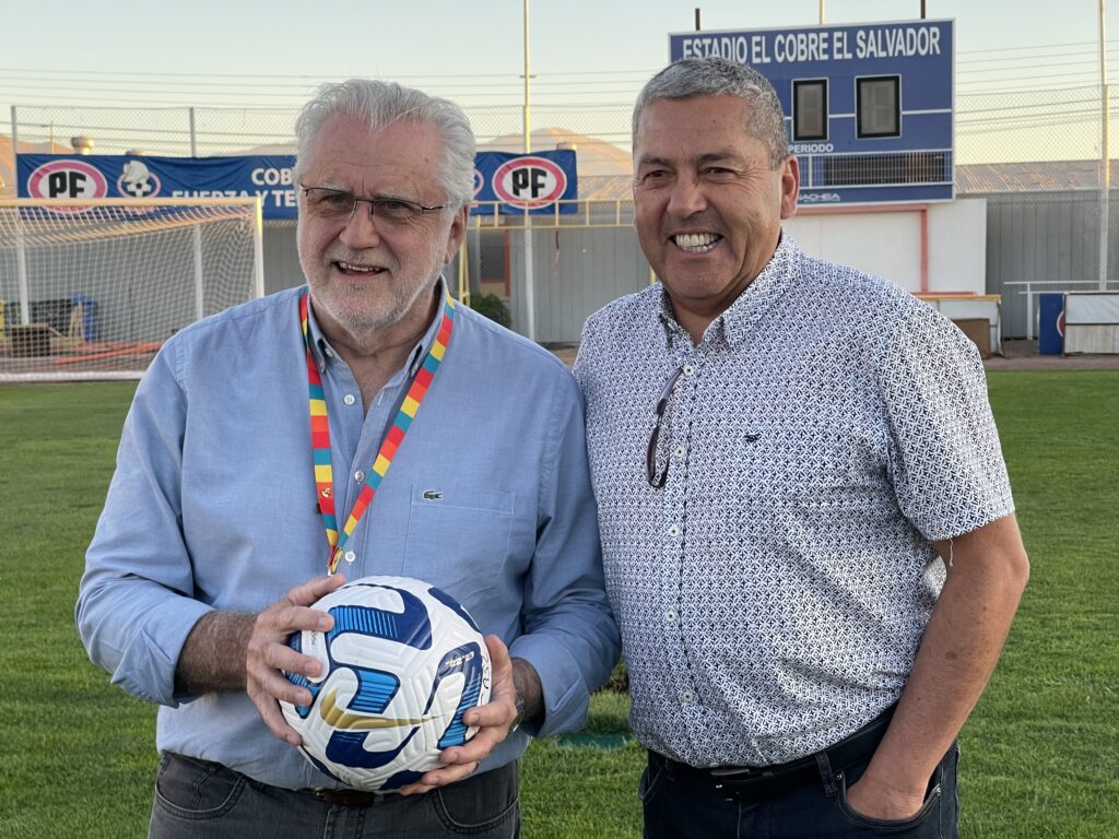 Para finalizar la visita, llegó hasta el Estadio El Cobre en donde se reunió con el cuerpo técnico de Cobresal, encabezado por su entrenador Gustavo Huerta, con quien dialogó sobre la buena campaña del cuadro albinaranja y el orgullo de representar a la ciudad minera ante Chile y el mundo, gracias a la reciente clasificación de Cobresal a Copa Sudamericana.