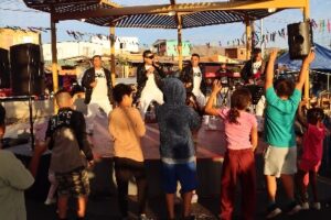 Durante la tarde, el bloque infantil convocó a niñas y niños que disfrutaron de la presentación de la Compañía Garganta Show, animación, concursos, pinta caritas y juegos, generando un ambiente familiar y participativo. Posteriormente, el pasacalle artístico comunitario recorrió el sector con la energía de la Escuela de Arte y Percusión Copiapó, la Banda de Bronce Sabor Moreno y Caporales San Martín Illampu Copiapó, llenando la plaza de ritmo, color y expresiones del norte andino.