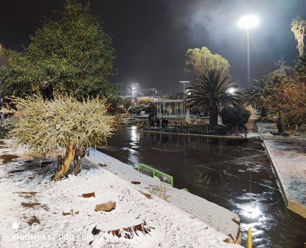 Desde el sector de El Salvador se informó de nevadas, y en la localidad de El Salado, la caída de plumilla o nieve en forma leve.