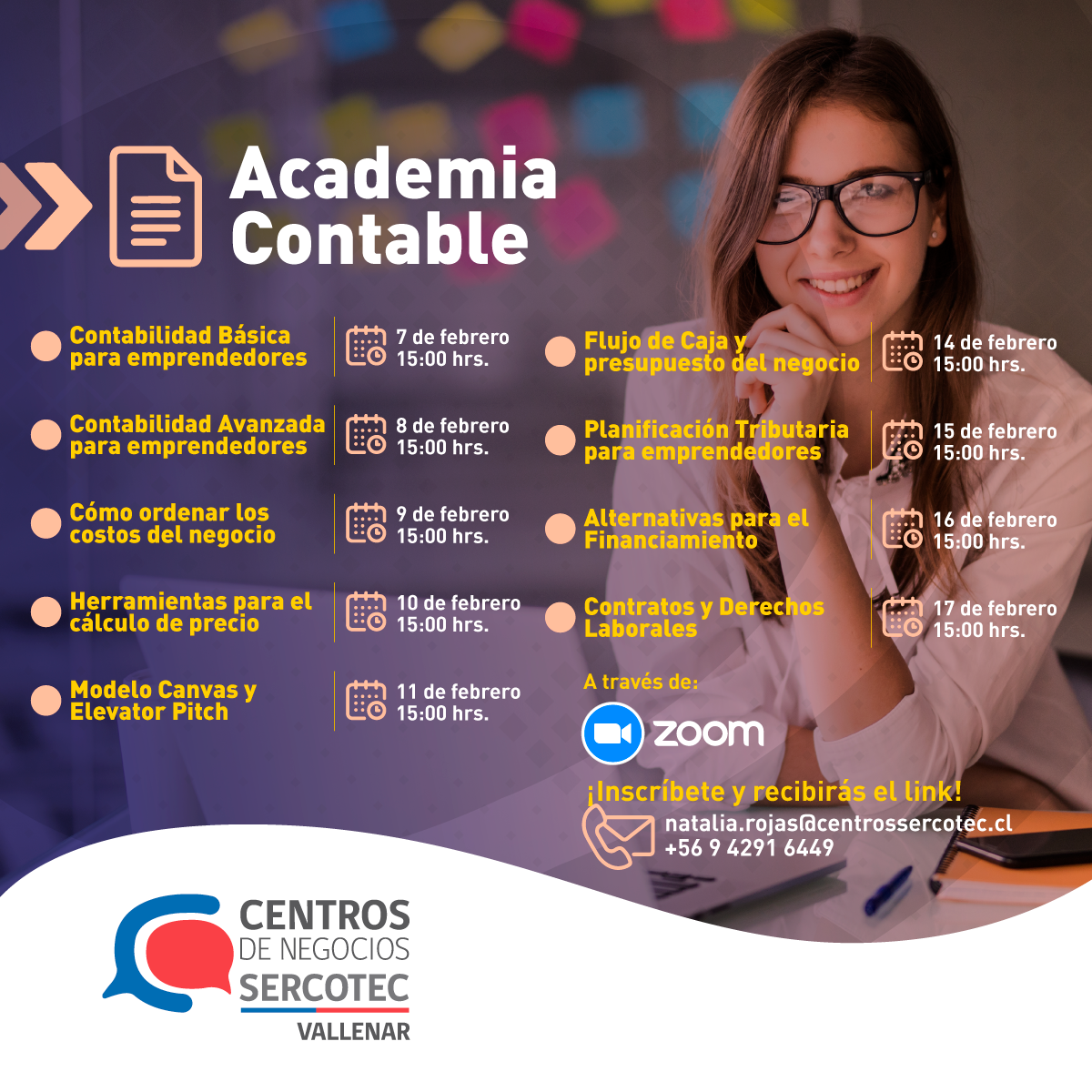 “Como Centro de Negocios Sercotec Vallenar, invitamos a nuestros clientes (emprendedores y emprendedoras) de la provincia de Huasco, para que se inscriban en una nueva academia gratuita, que permitirá mejorar sus competencias en el área contable”, mencionó Emma Schwarze Toro, Coordinadora Centro de Negocios Sercotec Vallenar.
