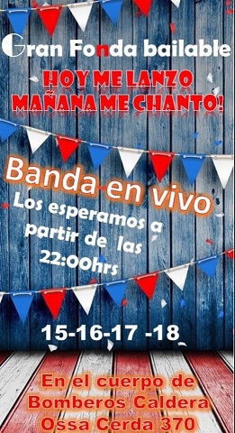 El Cuerpo de Bomberos de Caldera, ha organizado para los días 15, 16 17 y 18 de septiembre, la Gran Ramada Bailable ’Hoy me Lanzo, Mañana me Paro’.