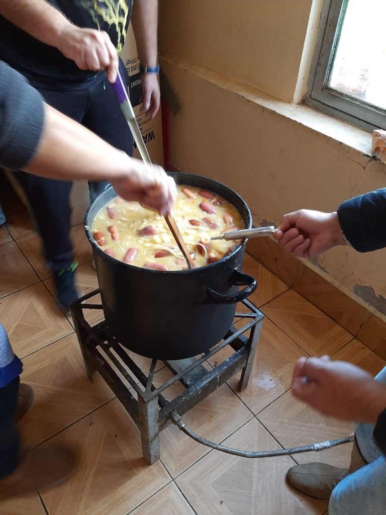 Es así que a muy tempranas horas se reunieron en la sede del club, a preparar el almuerzo solidario, y posteriormente fueron entregándolas a domicilio a los beneficiados.