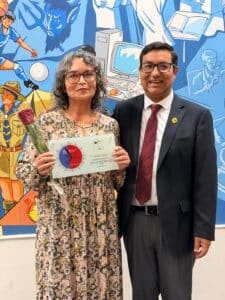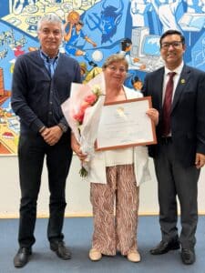 La ceremonia incluyó además una presentación del destacado artista regional Carlos Cabrera, que acompañó este espacio de reconocimiento. Así como la asistencia de la presidenta del gremio de los Asistentes de la Educación, Angelina Torres, y el representante de los Orientadores, Rafael Garmendia.