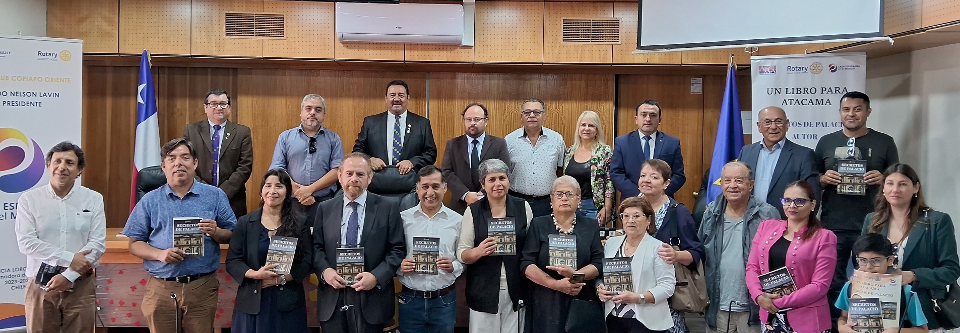 En acto realizado en la mañana de ayer en el Salón Carlos María Sayago de Copiapó, se realizó la ceremonia de relanzamiento del libro titulado ‘Secretos de Palacio”, del Autor Carlos Hadjez Cardani, organizado por Rotary Club Copiapó Oriente, quien se adjudicó el proyecto de edición e impresión de la obra.