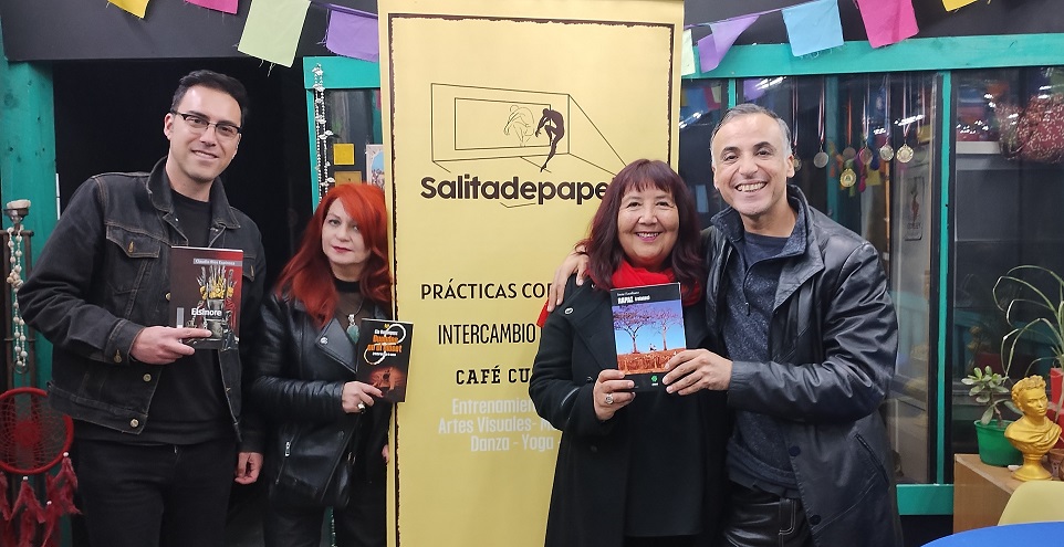 En la cafetería cultural Salita de Papel se llevó a cabo la presentación de tres libros de escritores provenientes de la filial Gabriela Mistral de la Sech, con Clo Domínguez, Irene Escribano y Claudio Ríos, quienes mostraron sus obras “Demonios y otros vicios”, “Rapaz” y “Elsinore”, respectivamente.